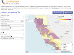 Create customized maps and tables using cancer registry data. Visualize cancer incidence across the population living in California. Examine incidence and mortality rates by county or region.